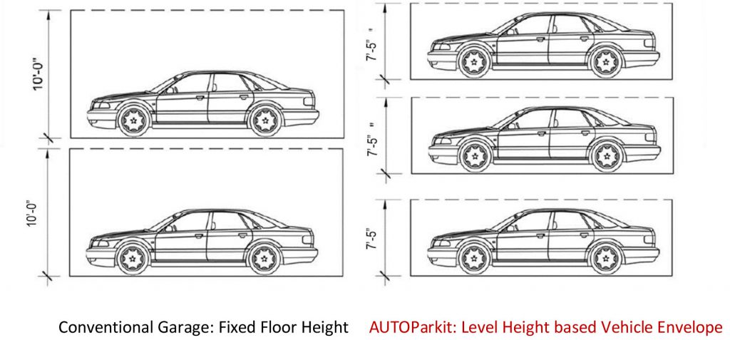 Quick Guideline – 3 levels of automated parking can fit in nearly the same height as 2 Levels of conventional parking.