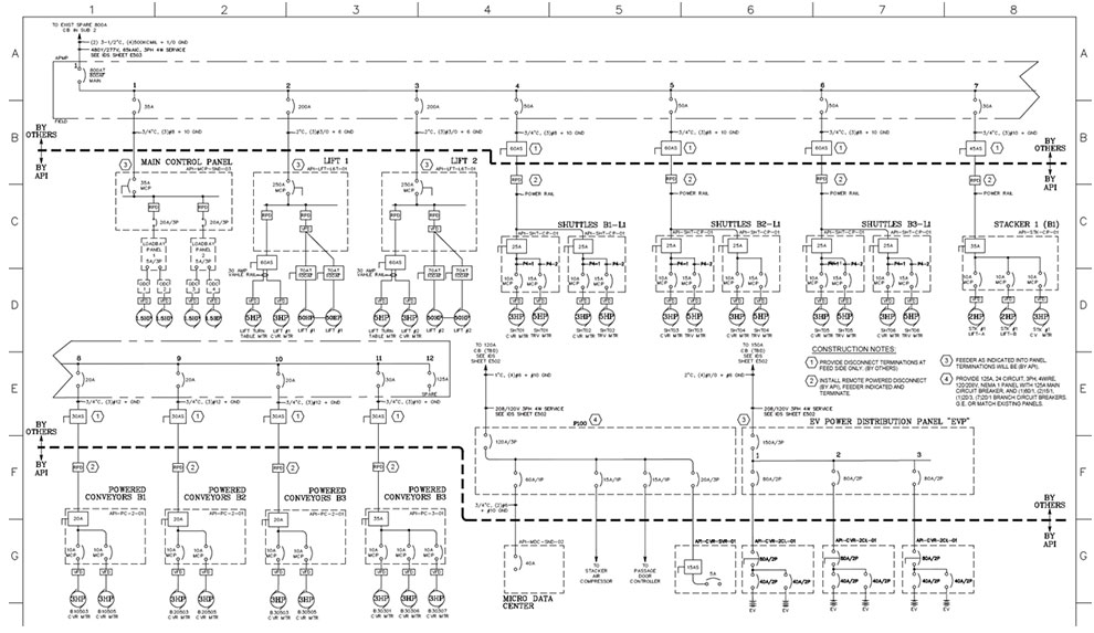 The Electrical Team starts by generating a single line diagram that can be included in the building plans used for permitting. There are clear demarcations for each disconnect installed by a General Contractor’s electrician so the entire AUTOParkit electrical systems are properly installed.